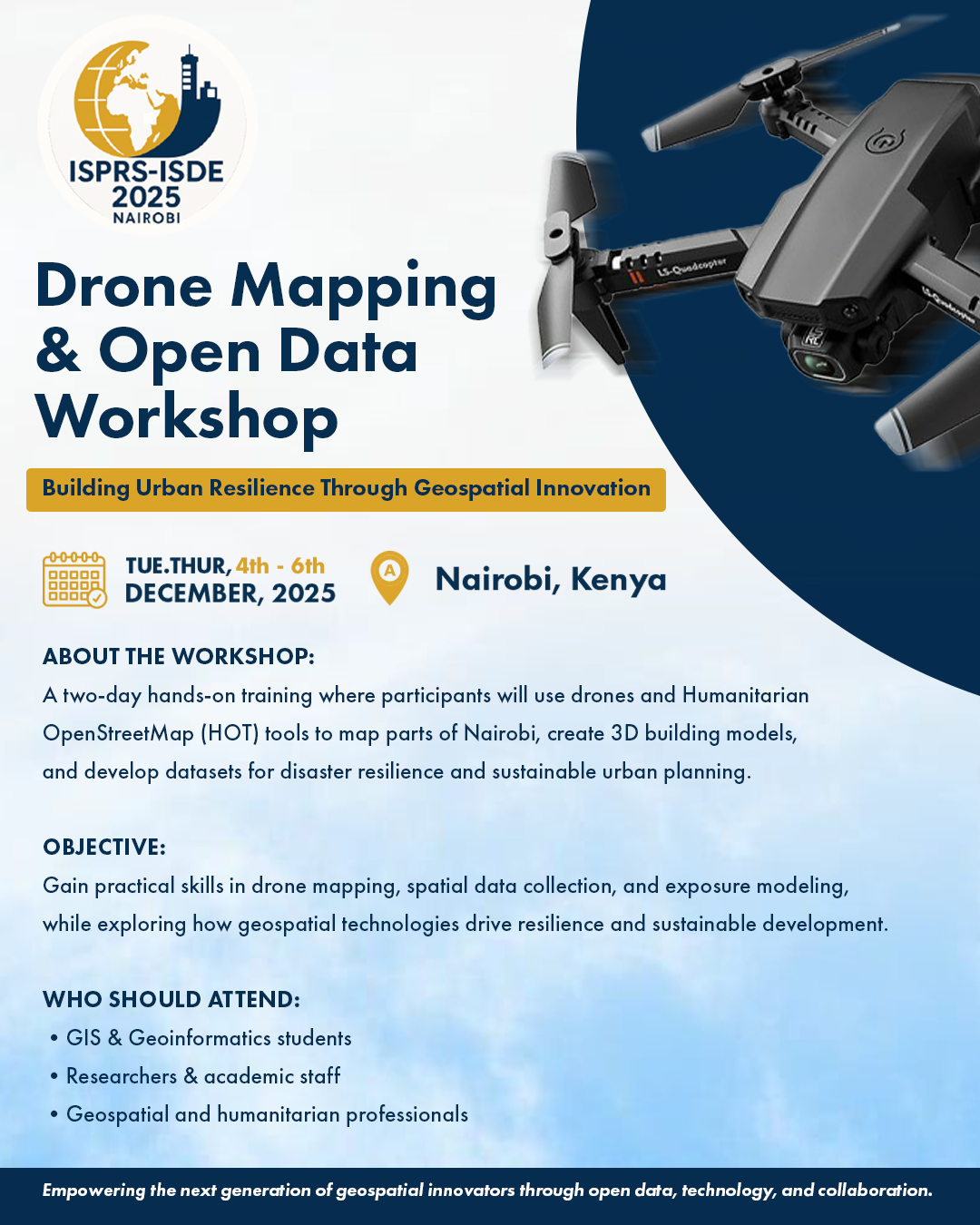 Join an exciting 2-day practical workshop that brings together geospatial experts and students to map Nairobi using drone imagery and Humanitarian OpenStreetMap (HOT) tools. Participants will gain hands-on experience in data capture, 3D building modeling, exposure assessment and loss scenario analysis, all aimed at advancing disaster resilience and sustainable urban development.