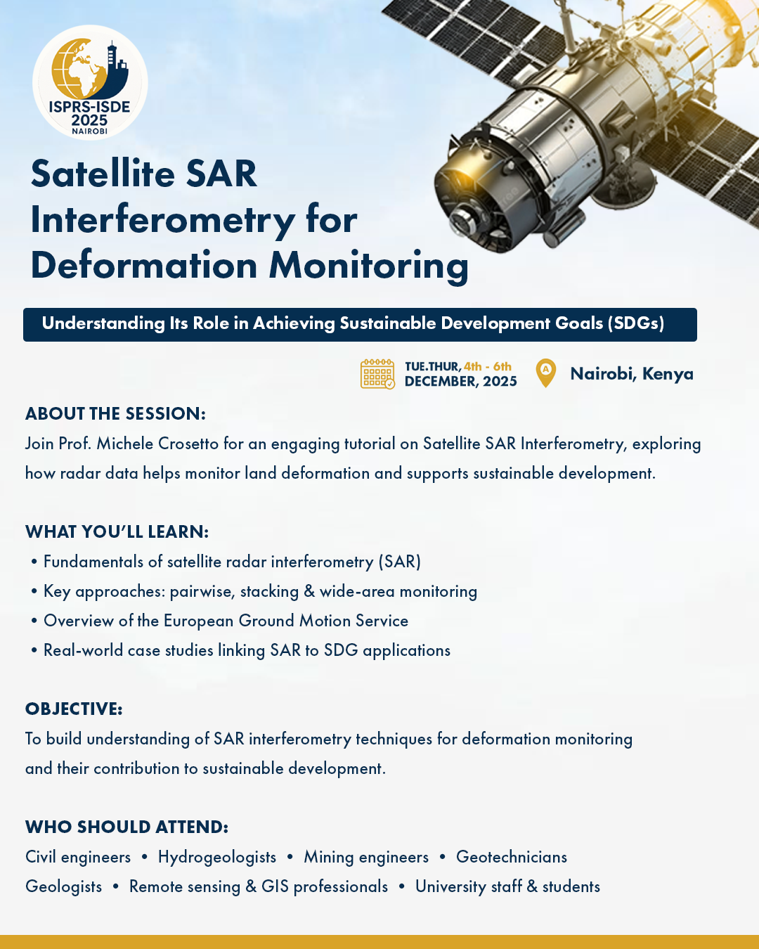 The last part of the tutorial will discuss several case studies, to illustrate how the results coming from SAR interferometry can contribute to different types of applications and to the Sustainable Development Goals.